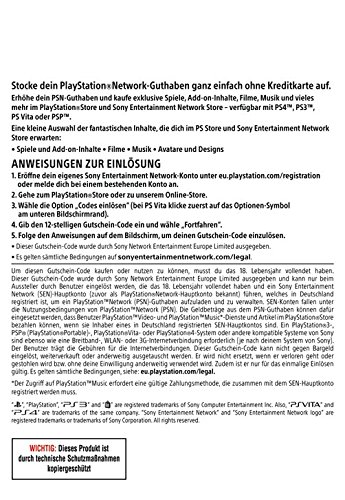 Nur gültig und funktionsfähig mit einem deutschen PlayStation Network (PSN) Konto. Einfache und schnelle Alternative um Ihr PSN Konto ohne Kreditkarte mit Guthaben aufzuladen. Immer das perfekte Geschenk - PSN Guthaben kann ohne eigenes PSN Konto gekauft und verschenkt werden. Lassen Sie Ihre Liebsten selbst entscheiden, was sie damit kaufen möchten.. Kauf und einlösen innerhalb von wenigen Minuten - nach dem Kaufabschluss erhalten Sie eine E-Mail mit Ihrem Download Code und detailierten Informationen zum Einlösen des Codes. Nutzen Sie PSN Guthaben um exklusive Angebote im PSN Store zu kaufen