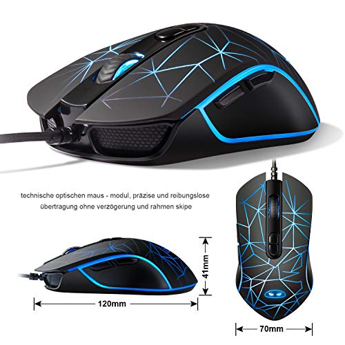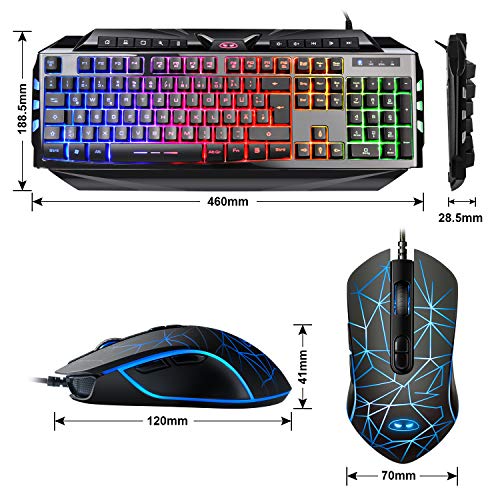 Das GK710 Tastatur / Maus Combo ist das neueste Produkt, mit dem Dignity Black wird Ihre beste Wahl sein.. Leicht zu tragen und zu sammeln, ist es eine gute Wahl für Arbeiter und Studenten und Spieler und so weiter.. Tastaturen Rainbow Hintergrundbeleuchtung mit zwei Modi des Atmens Licht und Dauerlicht, jeder Modus hat 3 Farben (rot, grün, blau), und es gibt 3 Grad Helligkeit (hohes Licht, mittleres Licht und wenig Licht), können Sie sie ändern, wie Sie möchten Die Hintergrundbeleuchtung wird nach dreimaligem Drücken von "Fn + ?" geschlossen.. Hintergrundbeleuchtete Gaming-Tastatur und Maus des beruflichen mechanischen Gefühls für Spiel und Büro.. Kompatibel mit Windows 8, Windows 7, Windows Vista, Windows XP oder Mac OS. Wir versprechen unseren Kunden 1 Jahr Garantie und lebenslange technische Unterstützung.
