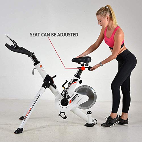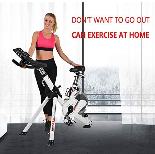 ? Mit einem Wasserflaschenhalter, das Design mit einem Wasserflaschenhalter ermöglicht es Ihnen, eine Trinkflasche und ein Handy beim Fahren leichter zu bekommen. Er besteht aus einem hochwertigen Stahlrahmen, robust, zuverlässig und bietet ein stabiles Fahrerlebnis. Die Unterseite des Fahrrads ist mit Rollen ausgestattet, damit Sie es leicht transportieren können, wenn Sie es brauchen.. ? Mit digitaler Anzeige, LCD-Display zeigt „Scan“, „Geschwindigkeit“, „Zeit“, „Distanz“, „Kalorien“, „Herzfrequenz“, „Herzfrequenz“, „Gesamtabstand“ an, damit Sie jeden Schritt des Trainings verfolgen können, gebaut im Auto. Der Herzfrequenzsensor im Inneren des Griffs ist einfach zu bedienen und Sie können Ihre Herzfrequenz während des Trainings leicht überwachen.. ? Verstellbarer Griff und Sitz, geeignet für Menschen unterschiedlicher Größe und Gewicht. Ergonomisch gepolsterter Sitz mit dickem Schaumstoff im Inneren und schnell trocknendem Design. Es kann vertikal und horizontal bewegt werden, um sich leicht an Ihre Körperform anzupassen. Der verstellbare Lenker kann von oben nach unten bewegt werden, um sich an eine Vielzahl von Haltungspositionen des Radfahrers anzupassen.. ? Magnetisches Design: Das neue System des Widerstands gegen Magnetron ohne Wartung löst das Problem der Abkühlung, wodurch das Fahren weicher, leiser und länger wird, bietet Ihnen ein besseres Fahrerlebnis. Ausgestattet mit einem verstellbaren Lenkrad, die Bremse wird die Folie auf dem Lenkrad platziert, um einen Widerstand zu erzeugen, und Sie können den Widerstand entsprechend Ihren Fitnessbedürfnissen anpassen.. ? Entworfen mit einem Riemenantriebssystem für ein hohes Niveau an sanftes und leises Fahren, damit Sie niemanden stören, wenn Sie im Büro arbeiten oder zu Hause trainieren. Die Pedale ziehen Ihren Fuß während der Fahrt zusammen, um zu verhindern, dass er sich verletzt, indem er rutscht. Diese können ein komfortables Pedalieren in die Richtung vorne und hinten bieten.