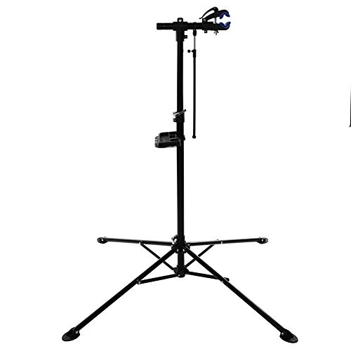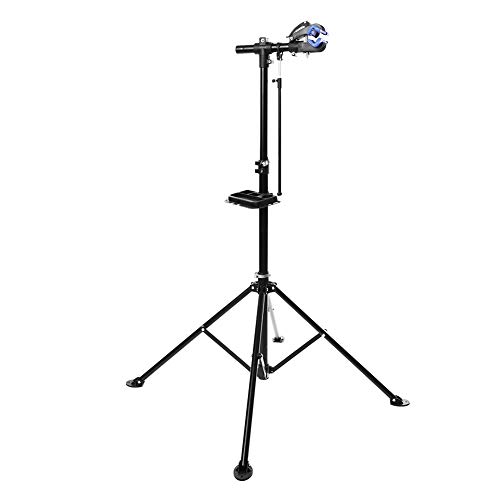 ?Gute Qualität und Langlebig?: Dieser Fahrradhalter ist aus hochwertigem Stahl gefertigt, bietet eine hohe Widerstandsfähigkeit, eine gute Haltbarkeit, robust und langlebig. Die weichen Backen schützen Ihren Rahmen vor Kratzern. Die 360 Grad drehbare Klemme hält Ihr Fahrrad in jeder Position. Der Fahrrad Reparaturständer ist sehr robust mit 4 Beinen für Stabilität und beinhaltet ein Werkzeugplatte.. Notwendiges Werkzeug für die Reparatur des Fahrrads: Dieses Stativ für die Reparatur des Fahrrads kann Ihnen helfen, das Fahrrad zu reparieren oder leicht zu reinigen, der Gurt mit einstellbarem Zyklus kann zwischen Rahmen und Lenker / Gabel / Rädern befestigt werden, um Bewegungen während der Arbeit zu verhindern.. ?Verstellbares Design?: Ausgestattet mit einer Teleskopstange für eine einfache Anpassung an die Länge des Fahrrads. Die Riemen sind mit sechs Einstelllöchern ausgestattet, je nach Umfang des Rahmens und der Lenker / Gabel / Räder.. Anwendung: Die Höhe ist verstellbar von 1,22 m bis 1,92 m. Das Teleskopstativ bietet eine gute Stabilität, belastbar bis 80 kg. Geeignet für Fahrradläden, Fahrradclubs und Radfahrer.. - -