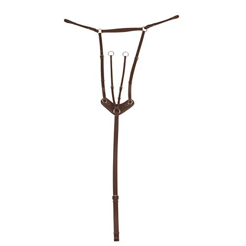 Aus vollnarbigem Rindsleder mit weißen Ziernähten, mit V-förmigem Brust-Pad, Breite 20 cm, gesteppt und Ton in Ton gefüttert.. Martingale mit verstellbaren Ringen. Schnalle aus Edelstahl.