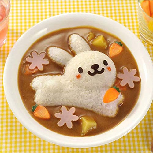 Geeignet für Ei, Reis, Sushis, Schokolade, Brot, Mondkuchen, Kuchen etc.. Dieser Artikel ist eine perfekte und umfassende Reiskugel, die Instrumente für Formen wie Kaninchen, Delfin, Blume und Ausdruck produziert.. Temperaturbeständigkeit: unter 110 °C.. Lustig zu Hause Reiskugeln mit Kindern, Essen für Kindergeburtstag, Mittagessen und vieles mehr.. Nicht für Backofen und Mikrowelle geeignet.