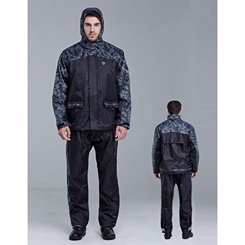 JKL Regen-Kostüm, wasserdicht, Jacke + Hose, Regen, wasserdicht, für Erwachsene, Splitter, Outdoor, Verdickung, Motorrad, Regenkleidung, Kapuze, atmungsaktiv, camouflage, S