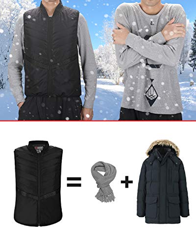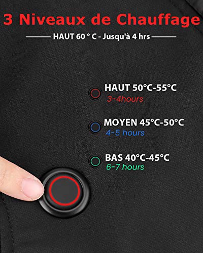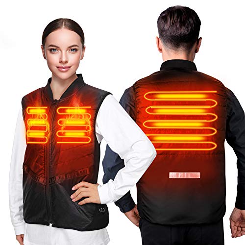 Einstellbare Temperatur: Die elektrische Heizweste hat eine intelligente Temperaturkontrolle in drei Klassen: rot – hohe Temperatur (55 °C), blau – mittlere Temperatur (50 °C), grün – niedrige Temperatur (45 °C), mit 3 Heizzonen auf Schultern und Rücken.. ?Reflektierendes Band?Die elektrische Heizweste ist mit einem reflektierenden Streifen auf der Rückseite ausgestattet, was Ihnen ein sicheres Fahren ermöglicht. Darüber hinaus kann die Weste nicht nur zum Reiten, sondern auch für Service-Ausflüge, Angeln, Klettern, Skifahren und Outdoor-Sport im Winter verwendet werden.. ? WASCHSICHERHEIT?Der wasserfeste Stoff ist sicher für Handwäsche und Maschinenwäsche. Aber Vorsicht: Vor dem Waschen bitte die Reste entfernen und es wird empfohlen, 30 °C lauwarmes Wasser für Handwäsche oder Maschinenwäsche zu verwenden.. ?Akku inklusive?Die Weste ist mit einem externen Akku von 7000 mAh/5 V ausgestattet, CE-zertifiziert. Sie können es sicher tragen, wenn Sie arbeiten oder spielen bei Schnee oder regnerischem Wetter, aber bitte beachten Sie, dass Sie die externe Batterie vor dem Waschen entfernen müssen, da sonst die Teile beschädigt werden.. Hinweis: Bitte überprüfen Sie vor dem Kauf sorgfältig unsere Größentabelle. Und dieser Kälteschutz ist mit einer detaillierten Bedienungsanleitung ausgestattet, bitte lesen Sie ihn sorgfältig vor dem Gebrauch durch.