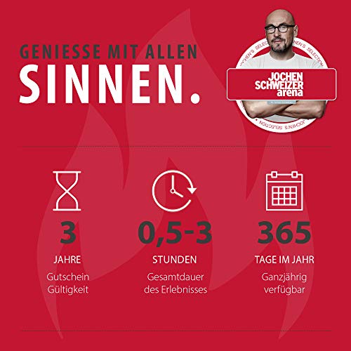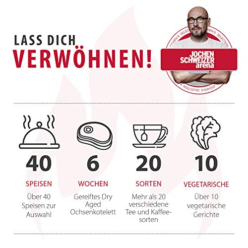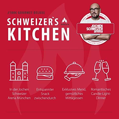 SCHWEIZER´S KITCHEN: Wir verwöhnen dich mit exquisitem Essen, erstklassigen Weinen & einer einmaligen Location. Kostet eine Portion Luxus und genießt das moderne, stilvolle Ambiente des hauseigenen Restaurants der Jochen Schweizer Arena!. KULINARIK: Neben jeder Menge Action & Abenteuer glänzt die Jochen Schweizer Arena in München auch mit allerfeinster Kulinarik. Genieß unsere moderne Crossover-Küche mit regionalen Zutaten & wöchentlich wechselnden Angeboten.. AUSWAHL: Du hast die freie Wahl – ein entspannter Snack, ein genüssliches Mittagessen mit wöchentlich wechselnden Angeboten oder ein romantisches Candle-Light-Dinner am Abend.. GESCHENK: Der Verzehr-Gutschein ist das perfekte Geschenk für Freunde, Familie, Muttertagsgeschenk, Vatertagsgeschenk, Geburtstagsgeschenk oder Weihnachtsgeschenk.. Jochen´s Selection umfasst Erlebnisgeschenke der Jochen Schweizer Arena, Eurofly Aviation & Vertical Sports Events. Geschenkidee für Männer, Frauen & Kinder! Gutscheine 3 Jahre gültig & übertragbar