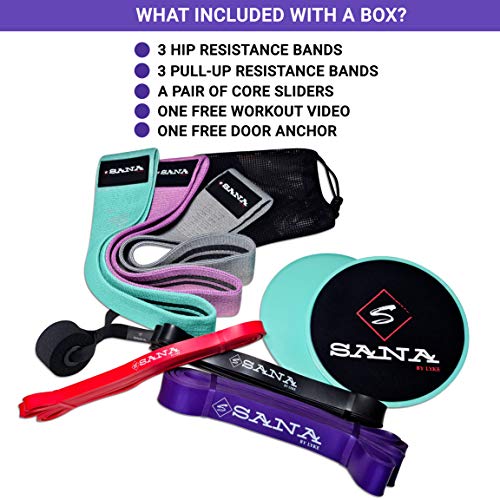 ? - SCHNELLE ERGEBNISSE – Mit dem großen Set an Fitnessbändern lassen sich, binnen weniger Minuten wöchentlichen Trainings, sehr schnelle Ergebnisse erzielen. Egal ob Fettabbau, Muskelaufbau oder allgemeine Fitness – die kurzen und langen Widerstandsbänder sind das ideale Hilfsmittel!. ? - MIT ÜBUNGSVIDEOS – Damit die Fitnessübungen auch korrekt ausgeführt werden erhalten Sie mit jedem Resistance-Bands-Set einen exklusiven Zugang zu unserer Fitnessplattform mit Übungsvideos und mit Tipps und Hinweisen unserer Profi-Trainer. Videos vorerst auf Französisch. Bald auch in Englisch erhältlich.. ? - XXL-LIEFERUMFANG – Das Set beinhaltet alles, was Sie für ein Training Zuhause, benötigen. 3 kurze sowie drei lange Trainingsbänder mit unterschiedlichen Zugstärken, Von Anfänger bis Profi. Zusätzlich gibt es noch zwei Gleitscheiben für Beinübungen sowie einen Türanker.. ? - MOBILES FITNESSSTUDIO – Egal ob Crossfit, Calisthenics, Freeletics, Pilates, Physiotherapie, Cardio, Krafttraining oder auch alternatives Hanteltraining – mit den Gymnastikbänder sind Sie super flexibel und können jederzeit und überall Ihr Training absolvieren.. ? - PREMIUM QUALITÄT – Die langen Bänder bestehen aus 100% Kautschuk und die kurzen Bänder sind aus Stoff mit Nylon. Selbst nach intensiven Trainingseinheiten halten die Bänder stets ihre Form, leiern nicht aus, werden nicht spröde und sind äußerst sanft zur Haut.