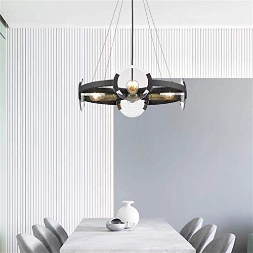 YXZQ Kronleuchter, rund, E27, 4 Leuchten, kreativ, Anhänger aus Metall, Lampenschirm aus Glas, Dekoration, Beleuchtung, Wohnzimmer, Schlafzimmer, Esszimmer, 4 Lichter, 55 x 150 cm, 6, lights