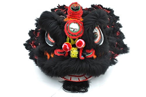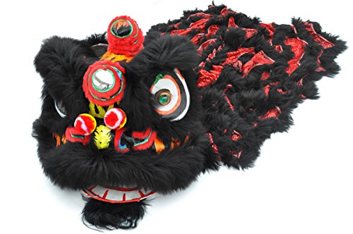 Kostüm und Tanz des Löwen verziert, Pelz, der Umhang aus Lammfell und Stoff mit Glitzer. Verkauft mit zwei Hosen für Personen ab einer Körpergröße von 1,70 m bis 1,90 m und Schuhe 42 – 43. Bestehend aus Kopf-, einem Umhang, von 2 Hosen und 2 Paar Schuhe. Traditionelle Schlägerkonstruktion * Reine Handarbeit. Farbe Schwarz und Rot
