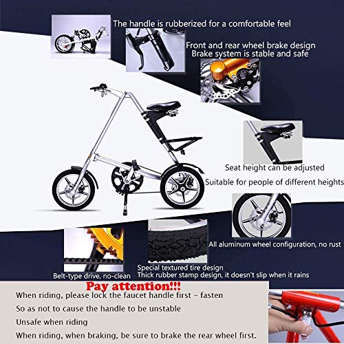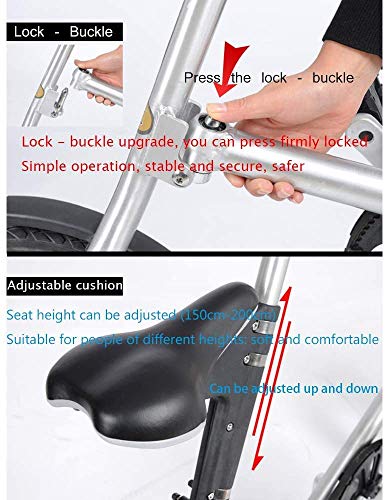 Klapprahmen: Der klappbare Rahmen, der nur wenig Platz einnimmt, kann einfach im Kofferraum des Autos oder in der Ecke des Hauses platziert werden. Was Sie erhalten: Ein Fahrrad + Eine Klingel + Ein Rücklicht + Ein Satz Montagewerkzeuge. Kohlenstoffstahlrahmen: starke Tragfähigkeit, verstärkter Kohlenstoffstahl, hohe Härte, Druck, hält 60 kg Gewicht aus, hochwertiges Schaltsystem, empfindlich, keine Probleme wie katastrophal. Dicke, verschleißfeste Anti-Rutsch-Reifen, leichtes Anti-Rutsch-Stoßdämpfungsdesign, stabileres und geschmeidigeres Fahren. Hochfeste Feder, die die durch unebenen Straßenbelag verursachten Unebenheiten wirksam reduziert, den Fahrspaß maximiert und Schäden am Auto verringert. Erhöhung der Lebensdauer. Bremssystem: Sichere und empfindliche Bremse mit dem klassischen Design der Vorder- und Hinterradbremsen, um die Sicherheit von Kindern beim Fahren zu gewährleisten. Gehen Sie zur Arbeit, trainieren Sie, reisen Sie mit Werkzeugen, gehen Sie zum Spielen aus. Sie können weniger Kontakt mit anderen haben und auf Reisen trainieren. Wenn Sie es leid sind zu fahren, können Sie es direkt zusammenklappen und in die Rücksitzbox legen, was besonders praktisch und platzsparend ist!