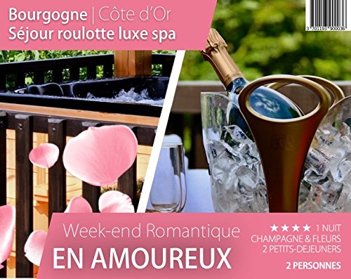 Ausgefallene Geschenkbox.. 1 Übernachtung in einem Luxus-Wohnwagen mit eigenem Whirlpool.. Zimmerservice mit Frühstück à la carte.. 1 Flasche Champagner, 1 Strauß Rosen & Blütenblätter auf dem Bett.. Im Wellnesshotel Le Domaine des Prés Verts Massagen & Spa im Herzen von Burgund