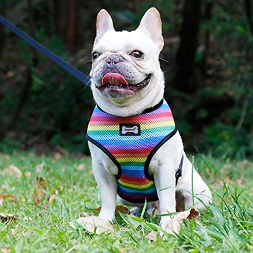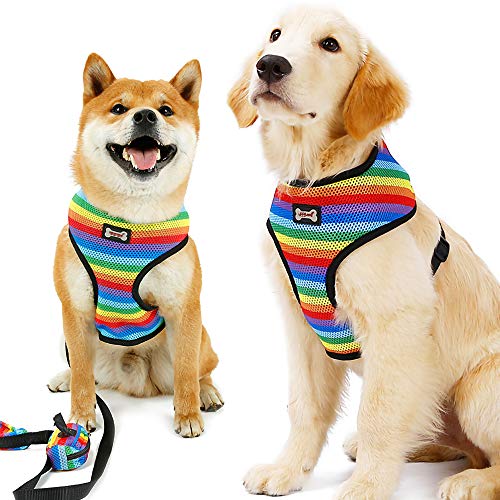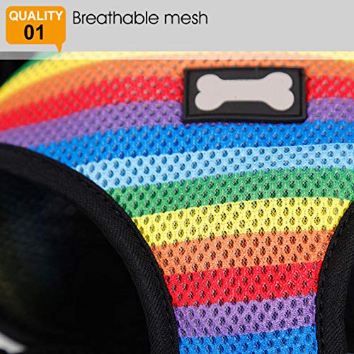 Pet Dog Control Geschirr aus Nylon, atmungsaktiv, weich, Sicherheitsweste, Gurt außen, Leinen, Regenbogenfarben, L