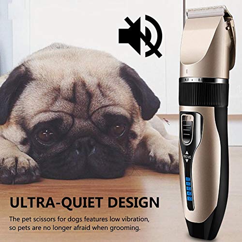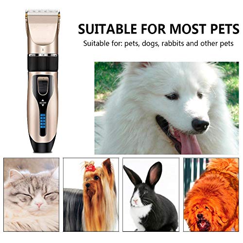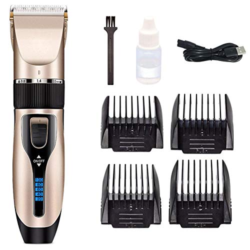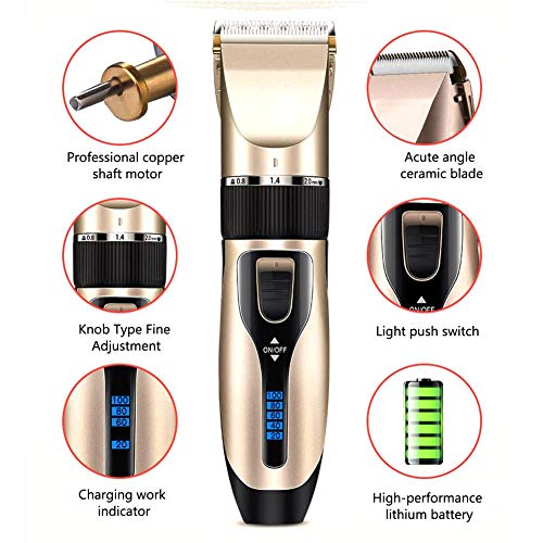 Professionelle Werkzeuge für die Fellpflege für Haustiere: Die Rasenmäher für Hunde sind mit Standard- und Festmodellen konzipiert. Das Katzenhaar-Set ist mit 12 Sets von elektrischen Rasenmähern, Scheren, Kämmen, Nagelfeilen und Flaschen ausgestattet. Geeignet für alle Hunde, Katzen, Kaninchen und andere Tiere.. Feineinstellung in 5 Stufen: Anpassung an die Länge und Dichte der Tierhaare, mit 4 Kämmen für 3/4/6/9 mm, geeignet für die Fellpflege von Haustieren für Anfänger oder Profis.. Ultraleiser Entwurf: Die Schere für Haustiere hat eine geringe Vibration, so dass Haustiere keine Angst mehr haben, wenn sie sich ernähren.. Intelligentes LCD-Display: Das Set mit Hundeschneidemaschine für Haustiere kann die Ladeleistung anzeigen und die Spuren halten.. Leistungsstarker 3,7-V-Motor: abnehmbarer Schneidkopf, Keramikschneidekopf mit hohem Winkel ist scharf, langlebig und erzeugt keine Hitze.