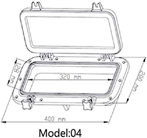 Anti-Aging- und UV-beständiges ABS.. 4 mm dickes gehärtetes Glas, wasserfeste Dichtung.. Länge außen x Breite: ca. 400 mm x 200 mm.. Länge innen x Breite: ca. 320 x 128 mm.. Material: ABS-Kunststoff.