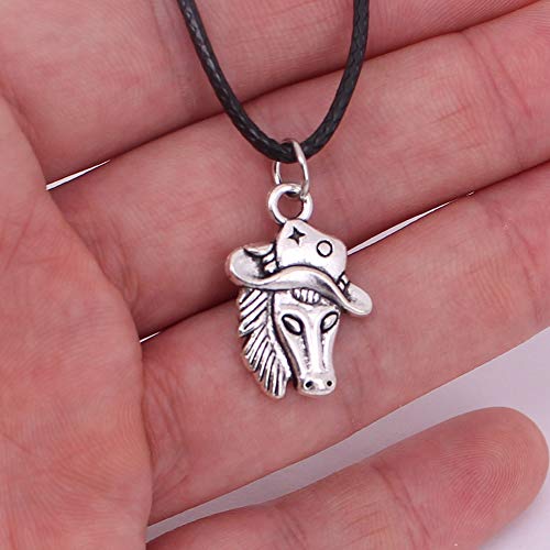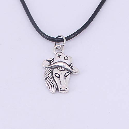 GMZTT Halskette Cowboy Hut Cowboy und Halsketten Anhänger Pferd für Pferdeliebhaber 40 cm Antik versilbert.