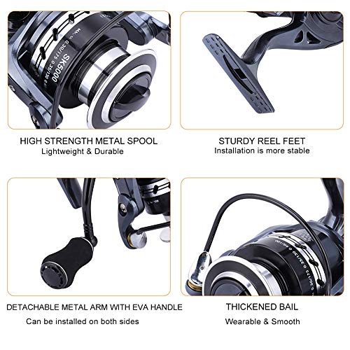 Tbest Angelrolle mit Filature Heavy Duty Metall Pfirsich Spinning Köder Fisch Angelrolle für Süßwasser Salzwasser, SK4000