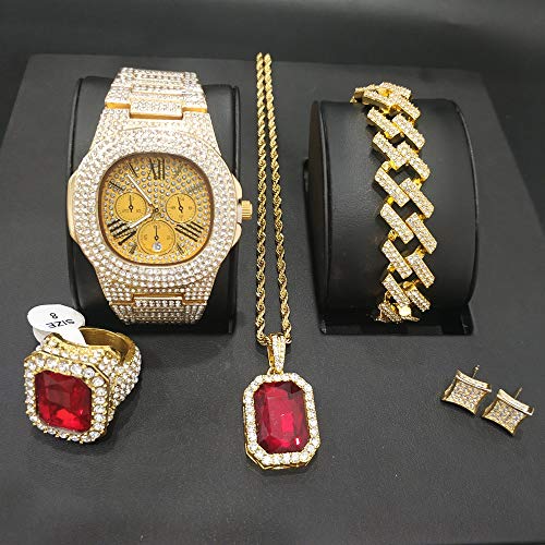 MTRESBRALTS Herren-Armbanduhr, Eiswürfelförmig, Hip Hop Armbanduhr, Halskette, Armband, Ring, Ohrringe, Hip Hop Combo Set, Damen, Rhodium-Plated-Imitat 45.75 EUR Metalltyp: Edelstahl. ... [mehr] Zur Wunschliste hinzufügen Auf Wunschliste Zum Anbieter