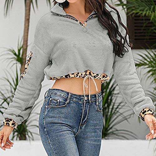 Sweatshirt, Damen, Kapuzen-Sweatshirt, Leopardenmuster, Langarm, Top, kurze Kordel, Sweatshirt, lässig, Streetwear, Asiangröße, Schwarz