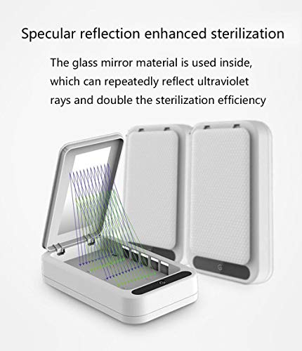 ? Hochwertige Materialien: Die Sterilisation von spekulären Reflexionen und die Verstärkung des Materials von Spiegel aus Glas wird im Innenbereich verwendet, was sich wiederholten UV-Strahlen widerspiegeln kann und die Sterilisationseffizienz verdoppelt.. ? Quarzlampe mit hoher Reinheit: UV-Licht mit hoher Intensität, die Bakterien schnell töten kann und die Sterilisationsrate erreicht 99,9 %.. ? Schnelle Reinigung in 3 Minuten: UV kann zu Zellen führen, die sich zerteilen können, was die molekulare Struktur der DNS oder RNA des Virus der Zelle zerstören kann, die Ursache für den Tod der Wachstumskelzen und die Wirkung der Sterilisierung. Dies ist ein kompletter physischer Prozess ohne Sekundärverschmutzung. Absolut sicher in der Anwendung.. ? Sterilisierend, tragbar: ergonomisches Design und kompaktes Design, egal wo Sie sind, Sie können es mit sich nehmen und Sie können es für Ruhe und Ausgehen verwenden.. ? Eine breite Palette von Anwendungsmöglichkeiten: Desinfektion von kleinen Gegenständen, Bindungen, Masken, Schnullern, Schlüssel, Zahnärzten, Schmuck, Umbau, Visitenkarten, Zahnstocher, Rasierer usw. und andere kleine Gegenstände, die angebracht werden können.