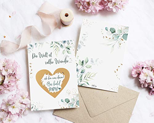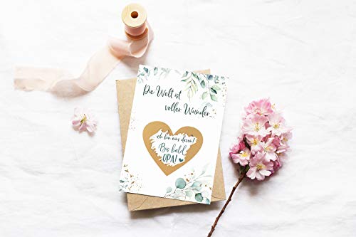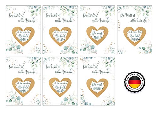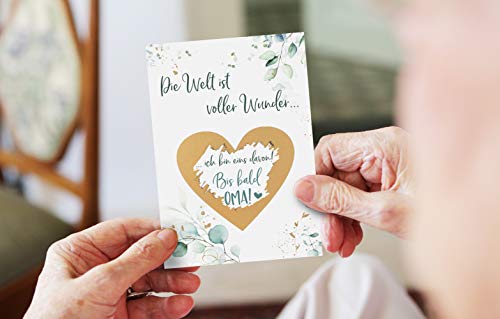 TOLLE ÜBERRASCHUNG - Du bist schwanger und möchtest es deiner Familie mit einer süßen Geschenkidee ankündigen? Dann sind unsere liebevoll gestalteten Rubbelkarten genau das Richtige für Dich!. WIR BEKOMMEN EIN BABY - Mit unseren Glückslosen gelingt die Baby Überraschung garantiert! Sorge für ganz besondere Momente bei Oma, Opa, Papa, Tante und Onkel!. VERSAND AM TAG DER BESTELLUNG - Wir geben 7 Tage die Woche alles und schicken deine Rubbellose so schnell wie möglich zu dir.. EINZIGARTIGES DESIGN - Die Rubbelkarten bestechen durch ihr besonderes und neutrales Design mit Eukalyptus Mustern. Personalisiere die Karten zur Schwangerschaft durch persönliche Zeilen auf der Rückseite.. TOP QUALITÄT - Die Rubbelkarten Schwangerschaft bestehen aus hochwertigem Premium-Papier und werden mit viel Liebe in DEUTSCHLAND hergestellt. Die Rubbel Etiketten werden von uns per Hand aufgeklebt.