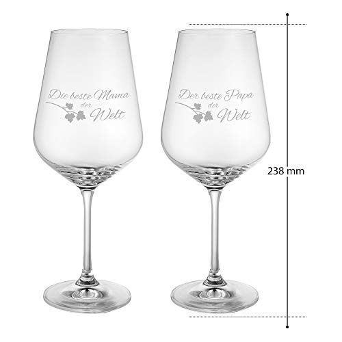 AMAVEL Rotweingläser, 2er Set Weingläser mit Gravur für Mama und Papa, Weinglas als Geschenkidee für Eltern, Füllmenge: 500 ml