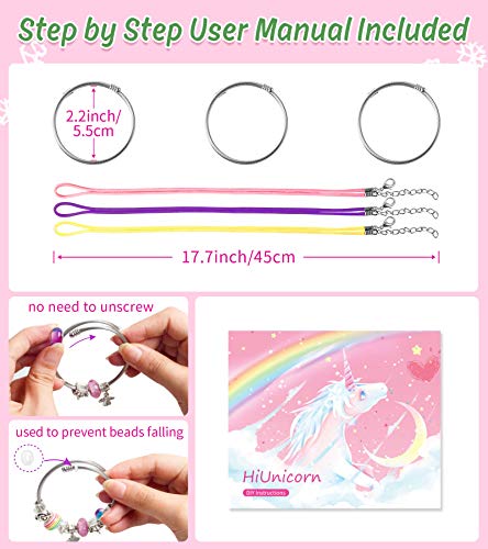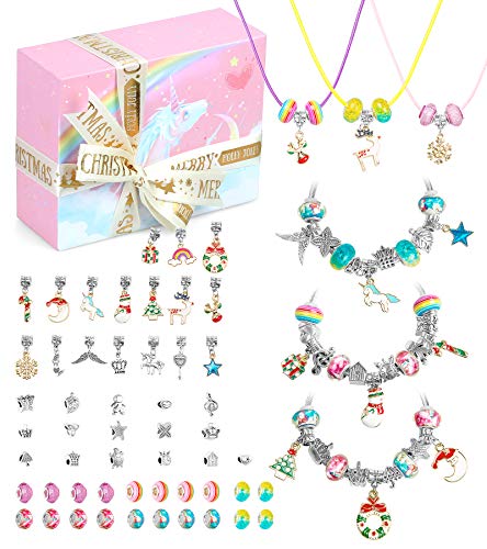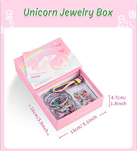 BEAUTIFUL CHRISTMAS & UNICORN JEWELRY KITS - HiUnicorn hat speziell das Weihnachts-Einhorn-Schmuckset für Teenager-Mädchen auf den Markt gebracht. Weihnachtsbaum, Schneemann, Schneeflocke, Rentier, Regenbogen, Einhorn baumeln süße Charms und bunte Perlen sind in einer Einhorn-Geschenkbox verpackt. Ihre Mädchen werden dieses Geschenk auf jeden Fall lieben.. GROSSE MÄDCHEN WEIHNACHTSGESCHENK - Eine schöne Geschenkbox in Einhornrosa mit gut verpacktem Band. Rosa, bunter, schöner Schmuck, Weihnachten Einhorn Handwerk sind alles, was die Mädchen lieben. Die Einhorn-Geschenkbox mit hoher Qualität kann auch als Schmuckschatulle verwendet werden. Es ist die beste Geschenkidee für Ihre jungen Mädchen an Weihnachten, Neujahr, Geburtstag und anderen besonderen Tagen.. Hilft bei der Entwicklung feiner Motorfähigkeiten: Ergotherapeuten unterstützen Pädagogen und Eltern häufig dabei, Kindern bei der Entwicklung ihrer Feinmotorik zu helfen. Lassen Sie Ihr Kind mit dem HiUnicorn-Armband- und Halsketten-Bastelset eine kreative Reise beginnen. So kann sie einfach nach Belieben basteln und basteln und gleichzeitig ihre feinmotorischen, visuellen und taktil-sensorischen Fähigkeiten entwickeln.. GENIESSEN SIE MÄDCHEN UNABHÄNGIGE DIY-ZEIT - Eine einfach zu lesende Bedienungsanleitung ist im DIY Craft Kit enthalten. Es wird den Mädchen klar zeigen, wie sie ihre eigenen Armbänder und Halsketten Schritt für Schritt mit Bildern herstellen können. Damit Ihre Mädchen ihre völlig unabhängige DIY-Zeit genießen können, ohne dass die Eltern helfen. Keine Schrauben und kein verstellbares Armbanddesign werden selbst kleinen Mädchen leichter fallen.. ALLES INKLUSIVE - 70 Stück Kits insgesamt, 3 Armbänder, 3 Halsketten, 9 Weihnachtszauber, 8 süße Charms, 16 versilberte Metallperlen, 20 bunte Regenbogenperlen, 8 kleine Gummiringe, 1 rosa Einhorn-Geschenkbox (Kartongröße: 13 * 10) * 4,7 cm), 1 Band, 1 DIY-Bedienungsanleitung.