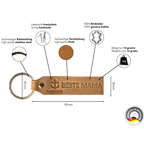 ? FREUDE AN MAMA VERSCHENKEN: Das perfekte Geschenk für Mama. Egal ob zum Geburtstag, Muttertagsgeschenk Baby oder einfach so. Qualität die gut ankommt.. ? MADE IN GERMANY: Höchste Langlebigkeit und eine perfekte Verarbeitung. Deutsche Handwerkskunst fair und umweltfreundlich mit liebe hergestellt.. ? EINFACH PRAKTISCH: Der Anhänger eignet sich für jeden Schlüssel, egal ob für Haus, Auto oder als Taschenanhänger. Und mit einem Durchmesser von 33 Millimetern bietet der Flache Schlüsselring einer großen Zahl von Schlüsseln Platz.. ? LEICHT IM GEWICHT: Unsere Aufgabe ist es nicht nur ein optisches Qualitätsprodukt zu liefern, sondern auch eine angenehme Haptik und perfekter Verarbeitung. Die wenigen Gramm Gewicht sind in der Hosentasche kaum zu spüren.. ? MEHR ALS NUR PRODUKTE: Seit 2017 bietet ANKERPUNKT aus dem Herzen des Rheinlands hochwertige, langlebige Produkte an, die ein Lächeln ins Gesicht zaubern. Natürlich fair und nachhaltig in Deutschland produziert.