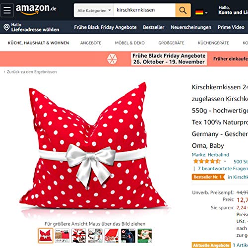 ???? DAS ORIGINAL "Das Rotkäppchen" Herbalind Kirschkernkissen ist ein Wärmekissen , das wohltuende, langanhaltende Wärme spendet. Dank Kirschkernen, die als bewährte Wärmespeicher gelten, kann das Kissen bei Schmerzen und Verspannungen helfen und kann für natürliche, sanfte Linderung und angenehme Massagewirkung sorgen. Unsere Kissen haben Zulasssung als ???? Medizinprodukt der Klasse 1.. ?? FAIRTRADE and HAND MADE IN GERMANY - Entspannen Sie sich und folgen Sie der Stimme Ihres Herzens. Die Herbalind Koernerkissen und Bauch-Wärmekissen werden in unserem Integrations- und Inklusionsunternehmen in liebevoller Handarbeit hergestellt! Nachhaltig und sinnvoll. Herbalind wurde 2002 gegründet und beschäftigt über 50% schwerbehinderte Mitarbeiter. Unsere Produkte sind perfekte Geschenke.. ???? BIOLOGISCH GEREINIGT - Bei Herbalind verwenden wir Naturprodukt. Das Waermekissen beeinhaltet ca 550g Kirschkerne, die in einem streng kontrollierten Prozess bei 70°C 24 Stunden getrocknet werden. Dabei liegt die Feuchtigkeit der Kerne bei max. 6%. Für eine sichere Anwendung und lange Produklebensdauer beachten Sie unsere Anwendungshinweise und Gebrauchsanleitung.. ???? NATÜRLICH HOCHWERTIG - Das Kernkissen ist aus natürlichen Materialien verarbeitet. Perfekt für WÄRMETHERAPIE als Heizkissen für Bauch und Gelenke oder Wärmepflaster geeignet. Für Erwachsene und für Kinder. Bei Bauchschmerzen und zum wärmen als Wärmekompresse. Auch in der Schwangerschaft. Der Bezug besteht aus 100% Baumwolle. Unsere Stoffe werden nach Öko-Tex Standard 100 zertifiziert.. ???? SICHER UND UNIVERSELL - Das beheizbares Kirschkernkissen ist einfach und sicher in der Anwendung. Das Erwärmen in der Mikrowelle dauert nur wenige Minuten, im Backofen ca 20 min und man genießt die wohltuende kuschelige Wärmequelle. Bei KÄLTETHERAPIE als Kältekompresse für mind. 45 min in den Kühlschrank oder das Gefrierfach legen.