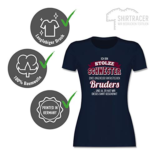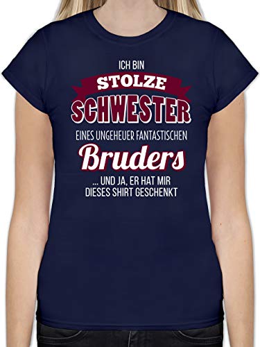 In der Farbe Navy Blau und Größe M ein richtiger Hingucker: Geschwister T-Shirts. Tolles Motiv für Mädels und Damen, die an Familienfeier mit dem Spruch "Ich bin stolze Schwester eines ungeheuer fantastischen Bruders und ja, er hat mir dieses Shirt geschenkt", Spruche und Statement überzeugen wollen. ? mädchen klamotten ab 12 jahren: Mit dem witzigen Motiv liegst du voll im Trend. Ich bin stolze Schwester: Lustige Geschenkidee für die Schwester. Eine tolle Überraschung zum Muttertag, Geburtstag oder Weihnachten: Das Kurzarm Frauenshirt mit Rundhalsausschnitt bieten wir mit vielen tollen Motiven, Prints und Muster an