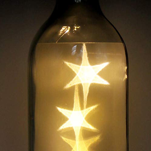 LED-Flaschenlicht mit integrierter Lichterkette und Hologramm-Effekt. Bedruckt mit einem Motiv von WB wohn trends.. Als Deko-Artikel oder Geschenk. Diese beleuchtete Flasche sieht einfach wunderschön aus - auch im ausgeschaltetem Zustand. Die Batterien und der Schalter sind unsichtbar im Flaschenboden integriert. Bei Bedarf schalten Sie die Beleuchtung einfach ein. Die Leucht-Flasche hat einen sehr sparsamen Verbauch, so dass die handelsüblichen Batterien lange halten.. Die Flasche hat den folgenden Aufdruck: Freunde sind wie Sterne. Du kannst sie nicht immer sehen, aber sie sind immer da ~ Druckfarbe: grau. Jede LED-Flasche wird von uns liebevoll vor Ort bedruckt. Unsere ausgefallenen Motive und Texte machen jede Flasche besonders. Egal ob für Sie selbst als Dekoration oder als tolles Geschenk. Z.B. auch sehr schön für Hochzeit, Winterzeit, Adventzeit, Geburtstag, Weihnachten oder vielen anderen Anlässen. Als Weihnachts-Geschenk, Hochzeits-Geschenk oder Tisch-Deko.. Für den Betrieb sind 3 handelsübliche Batterien vom Typ AAA erforderlich. Die Batterien liegen der Lieferung nicht bei. Die Maße der Glitzer-Flasche sind ca 29cm Höhe (inkl. Korken gemessen) und ca 7,5cm Durchmesser. Nur für den Innenbereich.