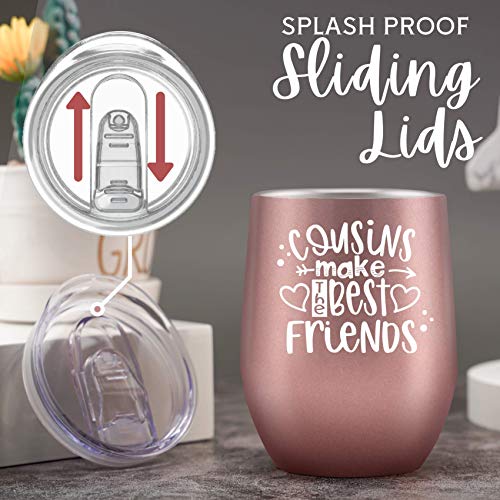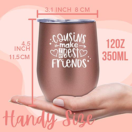 ? EIN ZEITLOSES GESCHENK : Der wertvollste Aspekt eines Geschenks ist, dass es nicht nur geliebt wird, sondern sie auch im täglichen Gebrauch ein Leben lang begleitet. Stellen Sie sich vor, wie glücklich und gerührt Ihre Cousine sein wird, wenn sie diese zarte Verpackung öffnet und diesen Weinbecher sieht. Ihre Familienliebe und Freundschaften werden ein Leben lang halten, genau wie dieses zeitlose Glas/Tumbler.. ?HIGH QUALITÄT - Hergestellt aus lebensmittelechtem, nahtlosem 18/8(304)-Edelstahl, ist dieser Becher langlebig, glatt, unzerbrechlich, rostbeständig, schweißfest und überträgt den Geschmack Ihrer Getränke nicht. Er wird mit einem durchsichtigen, BPA-freien Deckel zur Vermeidung von Verschüttungen geliefert, ist umweltfreundlich und ungiftig.. ?GIFT BEREITSCHRIFTSBEREIT - Mit einem exquisiten Geschenkkarton ist dieser Becher bereit als Geschenk für die Feier von Meilensteinen, Errungenschaften und besonderen Tagen wie Thanksgiving, Weihnachten, Weihnachtsfeier, Geburtstag, Jubiläum, Ruhestand, Verlobung, Brautparty, Hochzeit, Muttertag, Abschlussfeier, Hauseinweihung, Feiertage, Abschied, usw. Es kann das ideale Geschenk für Ihre süße Cousine sein.. ?KEEPS GETRÄNKE HEISS ODER KALT - Ihre Legenden werden diesen Edelstahlbecher bestimmt lieben! Die doppelwandige, vakuumisolierte Konstruktion hält Getränke 9 Stunden lang kalt oder 3 Stunden lang heiß. Kalte Getränke können an Sommertagen kühler genossen werden und heiße Getränke bleiben an kalten Tagen heißer.. ?WARRANTY & SUPPORT - Kommt mit 100% Zufriedenheitsgarantie. Wir bieten 15 Tage Geld-zurück-Garantie und lebenslangen Kundendienst für jeden Kunden. Wenn Sie Hilfe benötigen, wenden Sie sich bitte direkt an uns, und unser professionelles Kundendienstteam wird Ihnen innerhalb von 24 Stunden antworten.