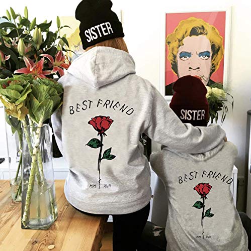 Daisy for U Beste Freunde Pullover für Zwei Mädchen Best Friends Hoodie BFF Pullover Sister Kapuzenpullover Damen Pulli Geburtstagsgeschenk 1 Stück, S, Grau1