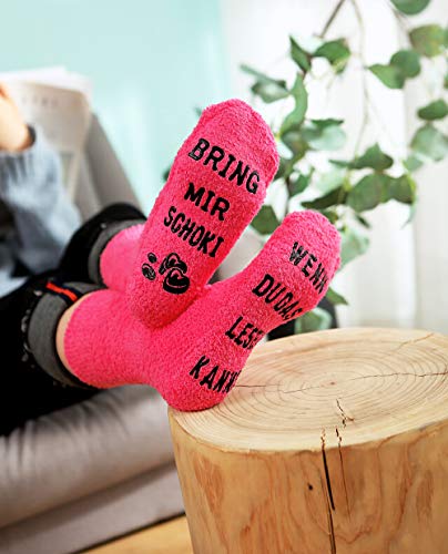 ???? Bei uns finden sie exklusiv einzigartige Geschenkideen für Frauen zum Valentinstag, Muttertag, Geburtstag - Schoki-Socken aus Korallen Samt. Sie sind sehr kuschelig, haben sehr gute Passform und angenehm zu tragen.. ???? AUSGEFALLENE GESCHENKE DIE UNSERE HERZEN BERÜHREN! Die einzigartige Geschenk-Verpackung zaubert garantiert ein glückliches Lächeln. Mit dem witzige Spruch wird es eine Riesenfreude bereitet.. ? EINHEITSGRÖSSE UND RUTSCHFEST: für Schuhgröße 36-42 geeignet. Machen sie sich keine Sorgen wenn sie die Schuhgröße nicht wissen. Die Socken sind extra dehnbar. Der Spruch auf der Sohle sorgt für eine rutschfeste Bewegung.. ???? WITZIGE GESCHENKIDEE ZU VIELEN ANLÄSSEN: beste Freundin Geburtstag, Einweihungspartys, Jubiläum, Verlobungen, Junggesellenabschied, 18. 20. 30. 40. 50. 60. Geburtstag Schwester Papa Mama, Einzug oder Hochzeitsgeschenk.. ? 30 TAGE GELD-ZURÜCK: Wir sind sicher, dass Sie die Kreativität und Qualität von unserem Socken lieben werden, falls nicht, bekommen Sie Ihr Geld umgehend zurück. ????LASSEN SIE SICH VON UNS ÜBERZEUGEN!