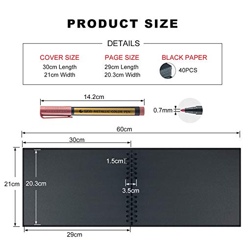 Fotoalbum größe 21*30 cm, schwarze Seiten Größe 20.3×29 cm, 40 Blatt / 80 Seiten Fotopapier, mit 10 Metallic Marker Stifte und 5 Fotoaufklebern. kann bis zu 200 Fotos aufnehmen 10 x 14 und Raum verlassen auf dem schwarzen Papier zum Schreiben.. SCHÖNES DESIGN UND QUALITÄTSMATERIAL - Hartkartonabdeckung, überlegene schwarze Seiten, nicht verblassendes, dickes Handwerkspapier. 360 Grad Blattdrehung, legt flach, dass das Album für eine lange Zeit wiederholt verwendet werden kann.. MULTIFUNKTION - das refillble Ringbuch und die leeren schwarzen Seiten ist sehr gut für DIY, Sie können es als buch zum selbstgestalten, Mini Fotoalbum, Hochzeit Fotoalbum, Hochzeitsgästebuch, Stammbuch Hochzeit, stammbuch der familie, usw. verwenden.. PRAKTISCH: 20 Extra-Scrapbooking-Papiere (40 Schwarze Seiten) kann zum Foto Buch hinzugefügt werden. kann als Scrapbook Hochzeits-planer Gästebuch Reisenotizbuch Tagebuch Speicherbuch Skizzenbuch.. GESCHENK IDEEN - Es kann ein sehr guter Muttertag Geschenk für Mama Oma sein, Geburtstagsgeschenk für Mädchen Beste Freundin, Jahrestag Geschenke für sie, Hochzeitstag Geschenke für paare, verlobungsgeschenk für Braut zu sein, kann auch ein besonderes valentinstag Geschenk, Weihnachtsgeschenk sein.