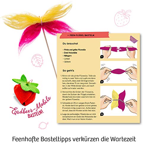 Einfach magisch, wie sich die winzigen Samen in fruchtig-süße Erdbeeren verwandeln. Mit diesem Experimentierset können Kinder beobachten, wie nach und nach die Blätter sprießen, zarte Blüten entstehen und am Ende zu leckeren Früchten werden. Die farbige Anleitung erklärt den kleinen Gärtnerinnen und Gärtnern Schritt für Schritt, wie sie mit Töpfchen, Saatgut und Erde-Pellets umgehen und ihre Pflanzen richtig pflegen. Zauberhaft: vom Erdbeer-Mobile bis zu märchenhaften Pflanzensteckern – traumhafte Feen-Bastelextras für süße Deko verkürzen die Wartezeit bis zur Ernte. Tipp: Der optimale Zeitraum für die Aussaat liegt zwischen Februar und April. Bei einer Aussaat bis Anfang September kann es etwas länger dauern, bis die Pflanzen Früchte tragen. Ein Pflanzset von KOSMOS für alle kleinen Feen- und Erdbeer-Fans ab 6 Jahren