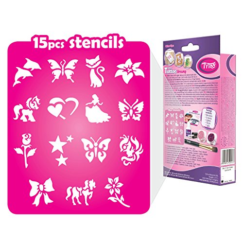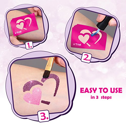 Tytoo Glitzertattoo Set für Mädchen mit 15 Schablonen- hypoallergen und hält bis zu 18 Tage
