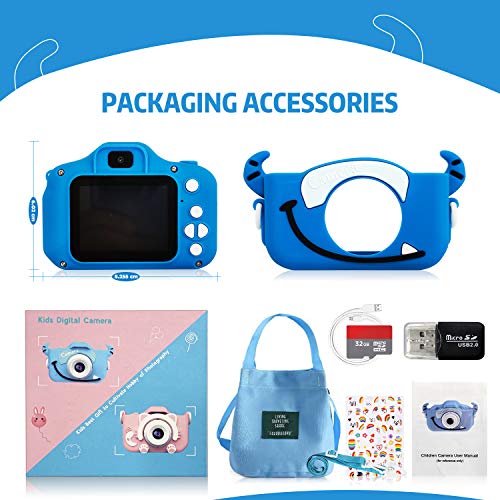 ????Hochleistungskonfiguration????Unsere Kinderkamera verfügt über einen 2-Zoll-IPS-Bildschirm, eine Zwei-in-Eins-Kamera und ein Camcorder-Design mit Autofokus, Timer-Aufnahme, Doppelobjektiv, Filter, Linseneffekte. Es kann mit einer TF-Karte mit einer maximalen Kapazität von 32 G (im Lieferumfang enthalten) ausgestattet werden. Es kann mehr als 10.000 5 Millionen Pixel-Fotos und mehr als 600 Minuten 1080P-Video aufnehmen und speichern.. ????Multifunktional Selfie und Videokamera????Kinderkameras können nicht nur die Anforderungen von Kinderfotografie und -videos erfüllen, sondern ist auch mit 6 Filtern, 5 Kompositionseffekten, 9 Fotoaufklebern, 19 Comic-Rändern und 3 Spielen ausgestattet, um die Kinder zu verbessern Vergnügen. Die Digitalkamera für Kinder ist einfach zu bedienen, kann die Begeisterung der Kinder für Fotografie steigern und gleichzeitig die Vertrautheit der Kinder mit modernen Geräten steigern.. ????Bequemes System????Diese kleinkind kamera für Kinder ist mit einem benutzerfreundlichen System ausgestattet, das in mehreren Sprachen umgeschaltet werden kann. Durch die einfache und leicht verständliche Bedienung können Kinder schnell loslegen, und das reichhaltige Tastensystem erleichtert die Verwendung für Kinder. Gleichzeitig unterstützt es das Aufladen über USB, das vollständige Aufladen dauert nur 1 bis 1,5 Stunden und es können Daten auf Windows- und Mac-Systeme übertragen werden.. ????Sicher und tragbar????Die hornförmige Gummischutzhülle besteht aus umweltfreundlichem, ungiftigem, weichem Silikonmaterial, ist sicher, geruchlos, schlagfest und langlebig. Die Gesamtgröße der Kinderkamera beträgt 100 Gramm, ist leicht und leicht zu tragen. Sie ist außerdem mit einer 32G-Speicherkarte, einem Kartenleser und einem Verbindungsmittel ausgestattet , Umhängetasche, einfach zu bedienen und zu tragen. Schließlich kann der beigefügte Satz von Aufklebern die DIY-Fähigkeit verbessern.. ????Bestes Spielzeug Geschenk????Unsere Produkte werden in einer süßen, robusten Verpackung geliefert, die eine gute Wahl für Weihnachtsgeschenke ist. Es eignet sich für verschiedene Anlässe wie Weihnachten, Karneval, Ostern, Jubiläum, Geburtstag und andere Feiertage als Geschenk für Jungen und Mädchen. Gleichzeitig erhalten die an alle verkauften Produkte unseren Kundendienst. Wenn Sie Fragen zum Produkt haben, wenden Sie sich bitte an uns. Wir bieten Ihnen einen engagierten Kundenservice.
