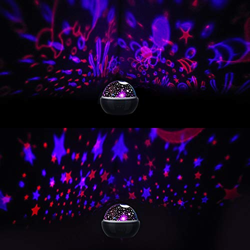 Kindersichere nachtlicht: aus abs und pvc-material, das licht hat eine komfortable note, keine geräusche, das licht ist augenschutz, super weich für baby kinder zu sehen. 100% sicher für das Baby zu spielen.. 3 Romantisches Licht 6 Traumfarbmodi: Die A-Taste schaltet das Hauptweißlicht ein und aus. Die B-Taste schaltet zusätzlich 3 farbige Lichter blau, grün, rot ein. Es werden 6 Farbkombinationen erstellt. Die C-Taste dreht die Lichter im Kreis um den Raum. Sie können Ihren Kindern die Farben beibringen. Jedes Mal, wenn Sie die Taste B drücken, wechselt das Licht zwischen Grün, Blau und Rot und dann alle drei Farben gleichzeitig.. Einfache Bedienung: Jeder Funktion entsprechen nur 3 Tasten. Entfernen Sie die äußere Abdeckung eines Sternprojektors, entfernen Sie die innere Abdeckung eines Nachtlichts.. Stromversorgung: Das Nachtlicht kann mit 4 x AAA-Batterien (nicht im Lieferumfang enthalten) betrieben werden oder über das USB-Kabel (im Lieferumfang enthalten) an die Powerbank angeschlossen werden. Wenn Sie das Gerät über das USB-Kabel mit Strom versorgen, müssen Sie die Batterien herausnehmen.. Innendekoration & bestes ideales Geschenk: Für eine Hochzeit, eine Geburtstagsfeier, eine Babypartyparty und eine Festivalfeier, die eine romantische Atmosphäre schaffen. Ein fabelhaftes Geschenk für Kinder, Kinder zum Geburtstag, Weihnachten, Kindertag.