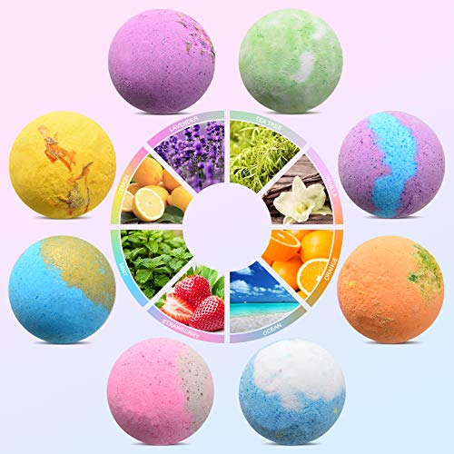 ?????8 PCS Badebomben Geschenkset?Das ShinePick Badebomben Geschenkset enthält 8 Badebomben in verschiedenen Farben und Düften, darunter Lavendel, Vanille, Zitrone, Minze, Orange, Erdbeere, Teebaum und Meersalz. Der Duft ist lang anhaltend und wirkt feuchtigkeitsspendend und beruhigend. Jede Badebombe wird einzeln verpackt und in eine exquisite Geschenkbox gelegt.. ?????Natürlich & Organisch?Es besteht aus Natriumbicarbonat, Natriumcarbonat, Zitronensäure, Meersalz, Maisstärke und ätherischen Ölen verschiedener Inhaltsstoffe. Es enthält natürliche Tiefseebadesalze und eine Vielzahl von Spurenelementen. Es ist langlebig, sanft und enthält keine reizenden chemischen Zusätze. Verursacht keine Hautschäden.. ?????Feuchtigkeitsspendend & Hautfreundlich?Der Badesalzball kann die Haut gründlich reinigen und mit Feuchtigkeit versorgen, so dass Sie nach einem anstrengenden Tag Ihre Körperbeschwerden reduzieren und sich vollständig entspannen können. Es macht das Stratum Corneum während des Badens weich und bei längerer Anwendung wird die Haut glatter und elastischer.. ?????Verträumt & Lustig?Legen Sie die Badebombe ins Wasser, es wird sofort schweben und sich auflösen,. Innerhalb weniger Sekunden erzeugt sie reichhaltige Blasen und verströmt einen wunderbaren Duft. Seine lebendigen und erstaunlichen visuellen Effekte machen Ihr Baden verträumt und interessant.. ?????Perfektes Geschenk & Garantie?Die einzeln verpackte exquisite Geschenkbox ist das beste Geschenk für Ihre Familie und Freunde. Sie ist die erste Wahl für Jubiläum, Muttertag, Valentinstag, Kindertag, Weihnachten, Thanksgiving und Halloween! ? 1 Jahr Garantie, 100% Zufriedenheitsgarantie ? Wir sind bestrebt, allen Kunden hochwertige Produkte und Dienstleistungen anzubieten. Wenn Sie Fragen haben, können Sie sich gerne über Amazon Nachricht an uns wenden.