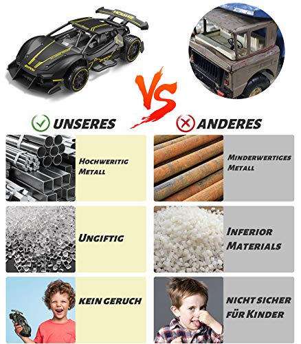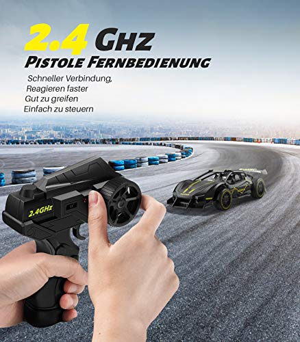 Ausgezeichnetes Kart: Die Geschwindigkeit beträgt von 15 km/h, und dies ist sehr gut für Anfänger und Kleinkinder geeignet. Die Körpergröße ist sehr klein (Größe: 3,8*8,3*24 Zoll), was das Fahren flexibler macht und für das Fahren im Innen- und Außenbereich geeignet ist. Die Farben Schwarz und Gelb eignen sich sehr gut für Jungen.. Leichter aber Solide: Der Körper besteht aus hochwertigen Legierung und soliden Kunststoffen, dadurch macht das RC Auto mehreren Stößen standhalten kann. Sehr gut geeignet für Kinder ab 6 Jahren.. Bis 32 Minuten Fahrzeit mit 2 Akkus: Mitgeliefert 2 3.7V 500mAh Batterien, jede unterstützt bis zu 18 Minuten. Hochwertige Batterien und Motoren sorgen für starke Leistung. Es handelt sich um einen Rennwagen, der sehr für den Rennsport eingesetzt wird.. Schneller, stabiler, Keine Störung: Das ferngesteurtes Auto verwendet die 2.4 GHz Funktechnologie, um schnellere und stabilere Verbindungen zu erzielen. Es ermöglicht mehr als 5 ferngesteuerte Autos gleichzeitig zu fahren. Kinder können zusammen spielen. Papa oder Mama können mit Kinder Rennen fahren, genießen Sie die Zeit, die mit der Familie verbringen.. Ideales Geschenk: Geeignet für Geschenke bei vielen Gelegenheiten, wie Geburtstag, Weihnachten, Thanksgiving, Ostern, erste Schule usw. Sorgenfreier Kauf: freundlicher Kundenservice und 1 Jahr Garantie.