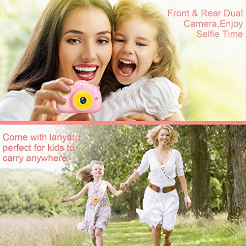 ? ?Beste Geschenke für Kinder? Diese Kinderkamera wurde speziell für Kinder entwickelt. Sie hat ein farbenfrohes, niedliches Aussehen und macht Fotos, Videoaufnahmen usw. mit mehreren Funktionen, um Kinder zwischen 3 und 12 Jahren anzulocken. Es ist ein guter Partner für die Kindheit von Kindern und das beste Geburtstags- / Weihnachts- / Erntedank- / Weihnachtsgeschenk für Kinder.. ? ?1080P Kinder-Digitalkamera vorne hinten? Die Kinder-Digitalkamera verfügt über zwei Kameras, Selfie ist verfügbar. Die untergeordnete Kamera unterstützt 1080p-Video und 8-MP-Bild. 2-Zoll-IPS-Bildschirm schützt die Augen von Kindern. 4-facher Digitalzoom durch langes Drücken der Aufwärts-Taste. Kinder können den Track ihrer Kindheit besser aufzeichnen und den unvergesslichen Moment festhalten.. ? ?Toy Kinders pielzeug kamera mit mehreren Funktionen? Neben der Aufnahme von Fotos, Videoaufnahmen und der Wiedergabe bietet die neue Kinder kamera mit weiteren Funktionen mehr Funktionen, automischen Lächelnfokus, LED-Blitz, Serienanahme, Zeitaufnahme, Datumsn stellung usw. Sie enthält außerdem 5 Funktionen Puzzlespiele, 7 Filtereffekte und 15 lustige Kartonrahmen halten Kinder von Telefon und Computer fern, entwickeln gute Gewohnheiten und lassen Ihre Kinder glücklich und gesund aufwachsen.. ? ?32 GB TF-Karte & 600 mAh Aku? Diese Kinder-Video kamera verfügt über eine wierdbare 600 mAh Lithium batterie mit realer Kaz. ? ?Sicheres und tragbares Design? Die Kinderspielzeugkamera besteht aus hochwertigen, umweltfreundlichen und weichen, ungiftigen Silimaerialien, die eine stoßfeste Schutzhülle bieten. Das robuste Design schützt vor Stürzen und Stürzen und hilft Ihren Kindern, das Fotografieren auf sichere und bequeme Weise zu genießen . Die niedliche Kinderkamera in Mini-Größe ist perfekt für kleine Hände. Sie wird mit einem haltbaren Lanyard geliefert, mit dem Kinder die Mini-Kamera am Hals aufhängen können.
