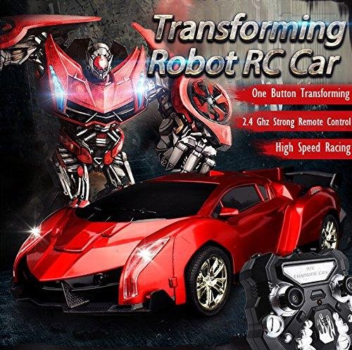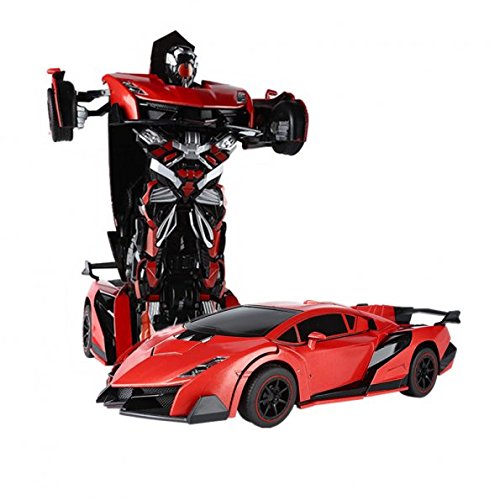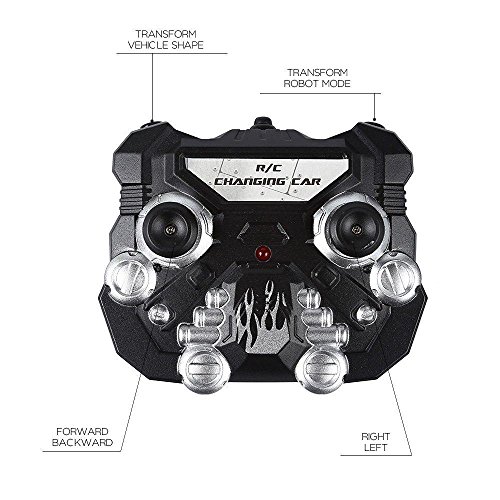 ?Versand aus Deutschland?3-7 Werktage anzukommen.. ?Schnelle Transformation?Es verwandelt sich automatisch vom Auto zum Roboter wenn Sie die Taste auf der Fernbedienung drücken. Verwandelt sich hin und her, leicht und ganz genial.. ?Affenzahn: High Speed RC Auto? Es hat 4 glatte Räder und können 360 ° flexibel drehen, sowohl in Roboter-Modus und wird automatisch beendet.. ?Realistischer Motorgeräusche? Es hat LED-Scheinwerfer und der Roboter hat spannende Geräusche; wenn man beschleunigt, vorwärts- und rückwärts fährt und nach links und rechts abbiegt.. ?Starke Fernbedienung? 2.4 Ghz starkes Sender- System mit eine Abstand Kontrolle von 30-40 Meter. Mit einer Akkuladung kann man 20-30 Minuten Fahren.