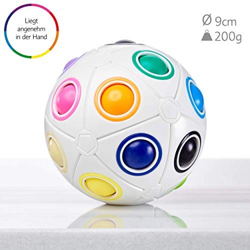 ???? SPANNENDES SPIELZEUG: Die bunten Kugeln des Balls sind durcheinander! Verschiebe die Kugeln und bringe sie wieder an den richtigen Platz. Das macht Spaß, ist aber ganz schön knifflig!. ???? PERFEKTES GESCHENK: Du bist auf der Suche nach guten Geschenkideen? Verschenk den Ball zu jedem Anlass - ob Geburtstag, Weihnachten, Ostern oder einfach so... die Freude wird riesig sein!. ??????????????????? FÜR KINDER: Der große Regenbogenball ist gut geeignet für Kinder ab 8 Jahre oder 9 Jahre. Wenn das Kind den kleinen Ball bereits kennt kann es auch jünger sein.. ???????????? FÜR ERWACHSENE: Der Ball ist ideal für Erwachsene die ein Logikspiele für zwischendrin brauchen. Sehr gut geeignet um bei der Arbeit oder beim Lernen kurz abzuschalten.. ???????? DEUTSCHER ANBIETER: CUBIDI ist eine deutsche Marke. Bei Fragen hilft dir unser freundlicher Service gerne weiter. Du wirst mit dem Kauf absolut zufrieden sein. Versprochen!