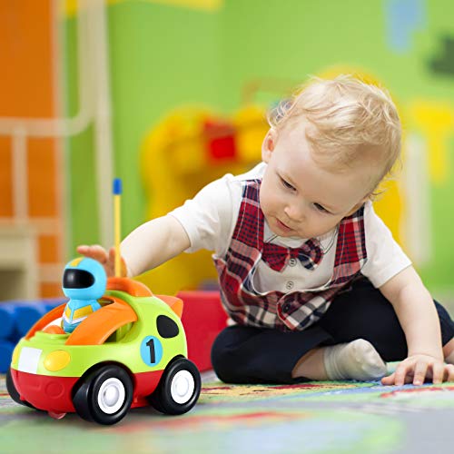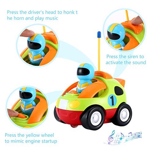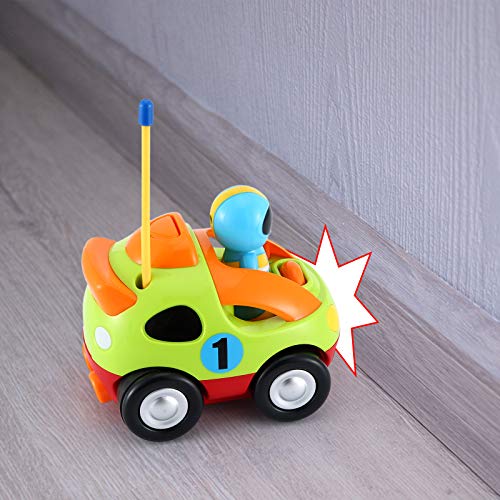 ?DAS ERSTE RC-AUTO DER BABYS?Hell, farbenfroh und perfekt für kleine Kinder, die zum ersten Mal lernen, RC-Auto zu spielen. Nur zwei Tasten auf dem Controller, um vorwärts und rückwärts zu gehen, spielen Kleinkinder gerne.. ?COOLE BELEUCHTUNG UND MUSIK?Drücken Sie die Taste an der Karosserie und am Auto, um die Aufmerksamkeit des Babys auf interessante Geräusche und helles Licht zu lenken.. ?SEPARATES AUTO & FAHRER?Der Fahrer kann vom Autositz aussteigen. Das separate Design von Auto und Fahrer macht Kleinkindern mehr Spaß. ?SICHERHEITSMATERIAL?Das gesamte Spielzeugauto besteht aus gesundheitsverträglichem ABS-Material, ist robust, sicher und ungiftig, hat keine Ecken und bietet einen umfassenden Schutz für die Gesundheit des Babys.. ?SICHERHEITSMATERIAL?Das gesamte Spielzeugauto besteht aus gesundheitsverträglichem ABS-Material, ist robust, sicher und ungiftig, hat keine Ecken und bietet einen umfassenden Schutz für die Gesundheit des Babys.. ?AUSBILDUNG?Kleinkinder üben die Entwicklung der Fähigkeit zur Unterscheidung von Geräuschen und der Flexibilität der Finger durch das Spielen dieses Zeichentrickautos.