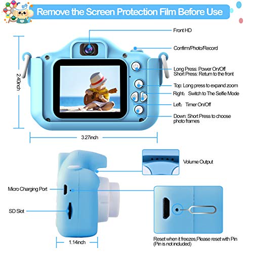 ?????20 Mega Pixel & 1080P HD-Video?Unsere neue verbesserte Kinder Kamera ist mit 20 Millionen Pixel Dual-Kameras vorne und hinten ausgestattet und ist mit 8-fachem Digitalzoom ausgestattet. Mit einem 2,0-Zoll-IPS- und 1080P-HD-Bildschirm kann das Sehvermögen Ihres Kindes besser geschützt werden. Diese Kinder Digitalkamera ist eine gute Wahl für Anfänger, um Fotografie zu lernen und ihnen zu helfen, den Traum eines kleinen Kinderfotografen zu verwirklichen.. ?????Verbessern Sie die Intelligenz von Kindern?Unsere Fotokamera designs für Kinder mit mehreren Funktionen, verschiedenen Arten von Filtern und Fotorahmen können Kindern helfen, ihr Gehirn zu trainieren, insbesondere die lustigen Puzzlespiele, können die Denkfähigkeit und Intelligenz von Kindern erheblich verbessern und ihnen helfen, sich von Telefon und Computer fernzuhalten. Eltern müssen sich keine Sorgen mehr machen, dass ihre Kinder immer ihre Telefone bzw. Handys zum spielen nehmen.. ?????Wiederaufladbarer 850-mAh-Akku & 32 GB Große Kapazität?Diese Selfie-Kamera für Kinder ist mit einem wiederaufladbaren 850-mAh-Lithium-Akku ausgestattet, der bei voller Ladung 2 bis 4 Stunden lang arbeiten kann. Die 32-GB-Micro-SD-Karte kann mehr als 2300 Fotos oder Hunderte von Videos speichern. Bedauern Sie nicht mehr, dass Sie und die glückliche Zeit Ihrer Kinder, aufgrund des niedrigen Akkus oder der geringen Kapazität nicht vollständig aufgezeichnet werden können.. ?????Anti-Drop-Silikon-Weichmaterial & Leicht Tragbar?Diese Kleinkind Kamera verwendet superweiche, stoßfeste Silikonmaterialien, die Beschädigungen durch Herunterfallen verhindern können. Mit einer niedlichen Schale in Hundeform und einem einfachen tragbaren Schlüsselband können Kinder ihre Mini-Spielzeugkamera um den Hals hängen und festhalten, was sie mit ihrer Familie sehen, und weiterhin glückliche Momente der Kindheit ihres Lebens aufzeichnen.. ?????Bestes Geschenk für das Wachstum von Kindern?Unsere Kinderkamera ist ein perfektes Geschenk für Weihnachten,Geburtstag, Feiertage und für Jungen und Mädchen im Alter von 3 bis 12 Jahren geeignet.Die Neuheit der Kinderkamera kann ihre Hobbys in der Fotografie kultivieren und sie dazu inspirieren,die Welt aus ihrer Perspektive zu erkunden.Wenn Sie Probleme mit unserer Kinderkamera haben,zögern Sie bitte nicht,uns zu kontaktieren.Wir werden Ihnen innerhalb von 24 Stunden antworten und helfen.