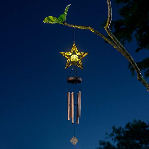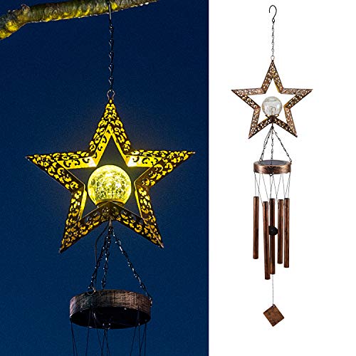 LeiDrail Solar Windspiele für Draußen Star Hanging Knistern Ball Warmweiße LED Leuchten mit Metall Röhren Wasserdicht für Garten Patio Gartenterrasse Hinterhof Dekoration Memorial Weihnachten Geschenk