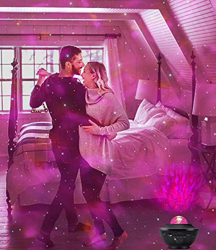 ?Magischer LED-Ozeanwellenprojektor? Die Star Projector kann einen realistischen Sternenhimmel auf Wände und Decke projizieren. Vier beruhigende Farboptionen (blau, rot, grün, weiß) können feste oder mehrfarbige Lichteffekte von Meereswellen projizieren. Ozeanwelle und Sternenlicht können einzeln oder in Kombination gespielt werden und erzeugen bis zu 21 Beleuchtungsmodi. Sie möchten in die Unterwelt des Meeres schwimmen oder durch den Stern wandern, so verträumt und wunderbar.. ?Lichter tanzen mit Musik? Der Sky Light Projector hat einen Mini-Lautsprecher eingebautet, stellen Sie einfach über Bluetooth eine Verbindung zu Ihrem Smartphone oder Tablet her oder legen Sie eine U-Disk ein. Genießen Sie die Schönheit des Sternenhimmels und genießen Sie romantische, entspannende und gemütliche Songs. Mit dem Sound-Bewegungssensor kann die Projektion die Farbe je nach Musikschlag ändern oder in die Hände klatschen, wodurch ein Disco- oder Partyeffekt entsteht.. ?Fernbedienung ? Timer? Ändern Sie einfach die Modi, um Ihren Party-Stil mit der Fernbedienung anzupassen (Entfernung: 12 m). Wählen Sie entweder den Ozeanwellen- oder den Sternenmodus oder beides, ändern Sie Farbe / Geschwindigkeit / Helligkeit des Wellenlichts, passen Sie den Musikmodus / die Lautstärke / den akustaktivierten Modus an, stellen Sie den 1h/2h/3h/4h-Timer ein oder spielen Sie ohne Unterbrechung.. ?Multifunktion? Der Sternenlicht Projektor kann als Nachtlicht, Ozeanwellen-Umgebungslicht, Stimmunglicht, Bühnenpartylicht, Disco-Kugel, Spielzimmer-Dekorlicht, Heimkino-Akzent, DJ-Beleuchtung, verwendet werden. Sie können diesen Projektor für Tanz / Partys / Geburtstag / DJ-Bar / Karaoke / Weihnachten / Hochzeit / Show / Club / Pub verwenden.. ?2 Jahre Garantie?Die Zufriedenheit unserer Kunden liegt uns am Herzen, daher versprechen wir eine halbe Jahre Geld-zurück-Garantie und 2 Jahre Produktgarantie.