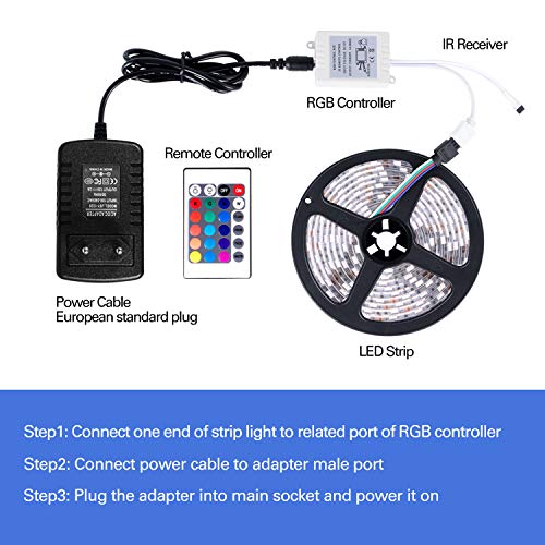 ???? ?Sicher und stabil? Kohlenstoffarm, keine Strahlung, kein Flackern und keine Verschmutzung von Mensch und Umwelt.. ?????Mutionaler und Sicherer?Irgendwann verfügen Sie über eine warme Atmosphäre für Ihr Zimmer, Terrasse, Veranda, usw. Ideal für Häuser, Bars, Geschäfte, Aquarien, Party, Vorgarten usw. Dazu ist der Led Band mit Gummimaterial gut isoliert. Bitte verwenden Sie das ADORIC Ledstreifen mit Vertrauen.. ?????Mehrere Farbwechsel?Vor dem Kaufen Sie bitte achten, dass es keine Farbe von Weiß bei diesen 3528 Licht Streifen. Beim Drücken des Knopfes“ W” werden bunte Farben geleuchtet. LED Stripes mit 5 Meter erfüllen Ihre Bedürfnisse nach bequemem Leben. Lichtstreifen können je nach Stimmung mehrere Farben ändern. (3 grundlegende Einzelfarben -Rot/ Grün/ Blau, 4 Farbwechesel, 13 Farbkombinationen). ?????Wasserdicht und Selbstklebend?Das Ledstreifen 3528 von Adoric verfügt über hohe Wasserdichtsfähigkeit von IP65. Mit dem Led-Klebeband auf der Rückseite kann man effizient und einfach zu befestigen. Sie können die Länge nach Bedarf abschneiden.. ?????Lächelndes Kundenservice-Team ?Die Zufriedenheit unserer Kunden liegt uns am SUNNEST-Herzen.