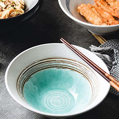 ?RETRO DESIGN? Die Steingutschalen ergänzen die Steingutkollektion mit einem einzigartigen Retro-Design im Stil der 70er Jahre. kann für Mikrowelle, Geschirrspüler verwendet werden.. ?INNOVATIV UND EINZIGARTIG? Glasierte Keramik, exquisite Verarbeitung, Anti-Hot, rutschfest, hochwertige, leicht zu reinigende, nicht leicht zu erzeugende Kratzer Stapelbare Lagerung.. ?GELTUNGSBEREICH? 9-Zoll-Suppen-Ramen-Nudelschale mit einem Fassungsvermögen von 1800 ml. weit verbreitet, perfekt für Udon, Reis, Nudeln, Obst, Salat, Joghurt, Pasta, Dessert usw.. ?GENIESSEN SIE DAS ESSEN? Tolle Gerichte für Ihre Familie und Gäste. Mit diesen schönen Schalen und Stäbchen können Sie Ihre hausgemachten Mahlzeiten genießen, als würden Sie in einem schicken Restaurant essen.. ?100% ZUFRIEDENHEIT?vision Unsere Vision ist es, Kunden eine zufriedene und komfortable Lebenserfahrung zu bieten. Wir versprechen eine 60-TÄGIGE GARANTIE ab Kaufdatum.