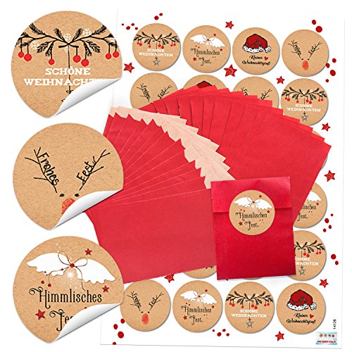 Kleine sog. Papier-Flachbeutel zum Verpacken von kleinen Geschenken, Dingen und Produkten zu Weihnachten. Ideal auch als Geld-Geschenk Verpackung oder zum hübschen Verpacken von kleinen Nachrichten und selbstgemachten Gutscheinen -). Auch gut als Schmuckbeutel oder zum Einpacken von Kunden-Einkäufen.. Mit dabei Aufkleber im vintage look in braun Kraftpapier-Optik, rot, schwarz und weiß. Sie halten sehr gut - dennoch ist ein NACHDRÜCKEN nach ein paar Minuten nie verkehrt. Weihnachtsgrüße wie Frohes Fest, Frohe Weihnachten, …. über ein kleines liebevoll verpacktes Präsent freut sich jeder - ob Kinder oder Erwachsene.. So sind schnell mehrere kleine weihnachtliche Geschenke verpackt. Eine Weihnachtsverpackung für Freunde, Bekannte, Kunden, Gäste und Mitarbeiter als give-aways oder Werbegeschenke.. Weihnachtssticker und Papiertütchen können auch separat gekauft werden sowie Ihr eine weitere Auswahl von Verpackungs-Möglichkeiten beim Logbuch-Verlag findet. Zudem auch kleine Weihnachts-Geschenkanhänger, Geschenkbücher zum Selberschreiben, Weihnachtskarten, ... eine große Auswahl an kleinen Geschenkideen.. Mit Liebe und Herz vom kleinen und blitzschnellen (tgl. Sofort-Versand) Logbuch-Verlag verbunden mit den BESTEN WÜNSCHEN ZUM JAHRESAUSKLANG und Dank für die Treue!