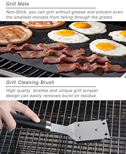 KOMPLETT GRILLBESTECK Set - Dieses 23 Stück grill set beinhaltet einen 4-in-1 Spatel, Grillgabel, Grillzange, 2 Antihaft Grillmatten, 2 Pfefferstreuer?4 Grill Spieße, 8 Maishalter, Silikonpinsel, Grillreinigungsbürste, Wechselkopf Grillbürste und Aluminium Aufbewahrungsbehälter.. PREMIUM QUALITÄT - Die Grillzubehör Grillen sind aus professionellem Edelstahl gefertigt, wodurch dieses Grillset langlebig, langlebig, pflegeleicht und spülmaschinenfest ist.. BENUTZERFREUNDLICHES DESIGN - Längliche Griffe schützen Ihre Hände vor Hitze. Hängende Ringe ermöglichen eine einfache Aufbewahrung während des Gebrauchs. 2pcs Mehrzweck BBQ Grillmatten sind waschbar und wiederverwendbar, aus Premium-hitzebeständigem PTFE Fiberglas-Beschichtung und enthalten kein PFOA. Alle Grillgeräte sind in einem tragbaren und praktischen Koffer untergebracht.. ALUMINIUM GRILLBESTECK KOFFER - Halten Sie alle Grillutensilien in Ordnung und schützen Sie sie im leichten Koffer, wenn Sie lagern oder Sie gehen. Dieses luxuriöse Grillset ist auch ein ideales Geschenk für Feinschmecker, Grillfans, Köche, Camping-Enthusiasten an Vatertagen, Geburtstagen, Weihnachten, Hochzeiten, Einweihungspartys und vielem mehr.. BESTER KUNDENSERVICE - Wenn Sie aus irgendeinem Grund mit Ihrem Kauf nicht ganz zufrieden sind - wenn er kaputt geht, während des Versands beschädigt wird oder wenn Sie es sich anders überlegen - lassen Sie es uns einfach wissen und wir werden ihn entweder ersetzen oder Ihr Geld zurückerstatten, Ihre Wahl!